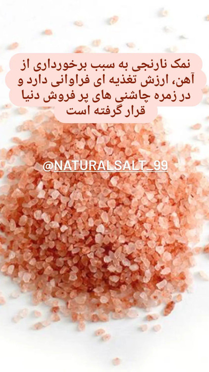 🟠نمک نارنجی سمنان از تبخیر اقیانوس ها و تغییر و تحولات زمین طی میلیون ها سال پیش گنجینه هایی برای ما باقی مانده که قدرشون را نمیدونیم 🟠🟠🟠🟠 یکی از نمک های باارزشی که برای خودمون است و قدرشون را نمیدونیم نمک نارنجی سمنان ✅ رنگ قرمز دیده شده در این نمک بخاطر وجود آهن خوب و لازم برای بدن است . منزیم و زینک این نمک باارزش از نمک هیمالیا هم بالاتره 🟠🟠🟠 از یه نمک چی میتونی بخوای که این نمک نداشته باشه ✅✅✅✅✅✅ ما قدر داشته هایمون را نمیدونیم ولی کشور های اطراف در حال غارت این نمک باارزش هستن